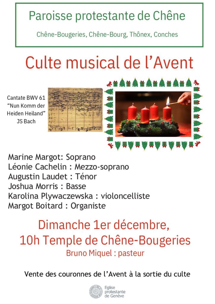 Dimanche 1er décembre, à 10h au Temple de Chêne-Bougeries